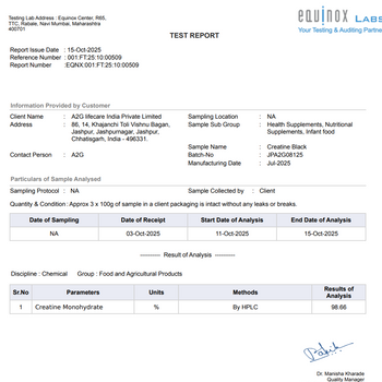 A2G Creatine Black is engineered for athletes who demand rapid gains. It combines pure creatine monohydrate with BioPerine® and NanoAbsorb™ technology for faster uptake and maximal strength and recovery