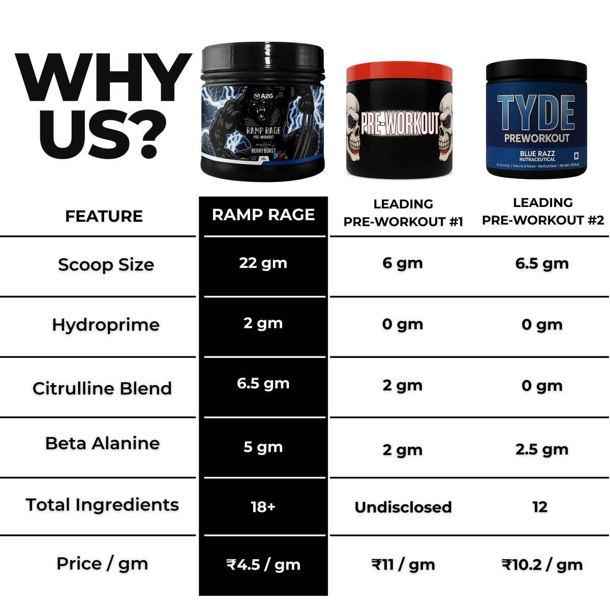 Ramp Rage is India’s first 22 g‑per‑scoop pre‑workout designed to deliver explosive pumps, sustained endurance and razor‑sharp focus Clinically dosed L‑citrulline, beta‑alanine and caffeine provide energy, pump and mental drive to make every workout count