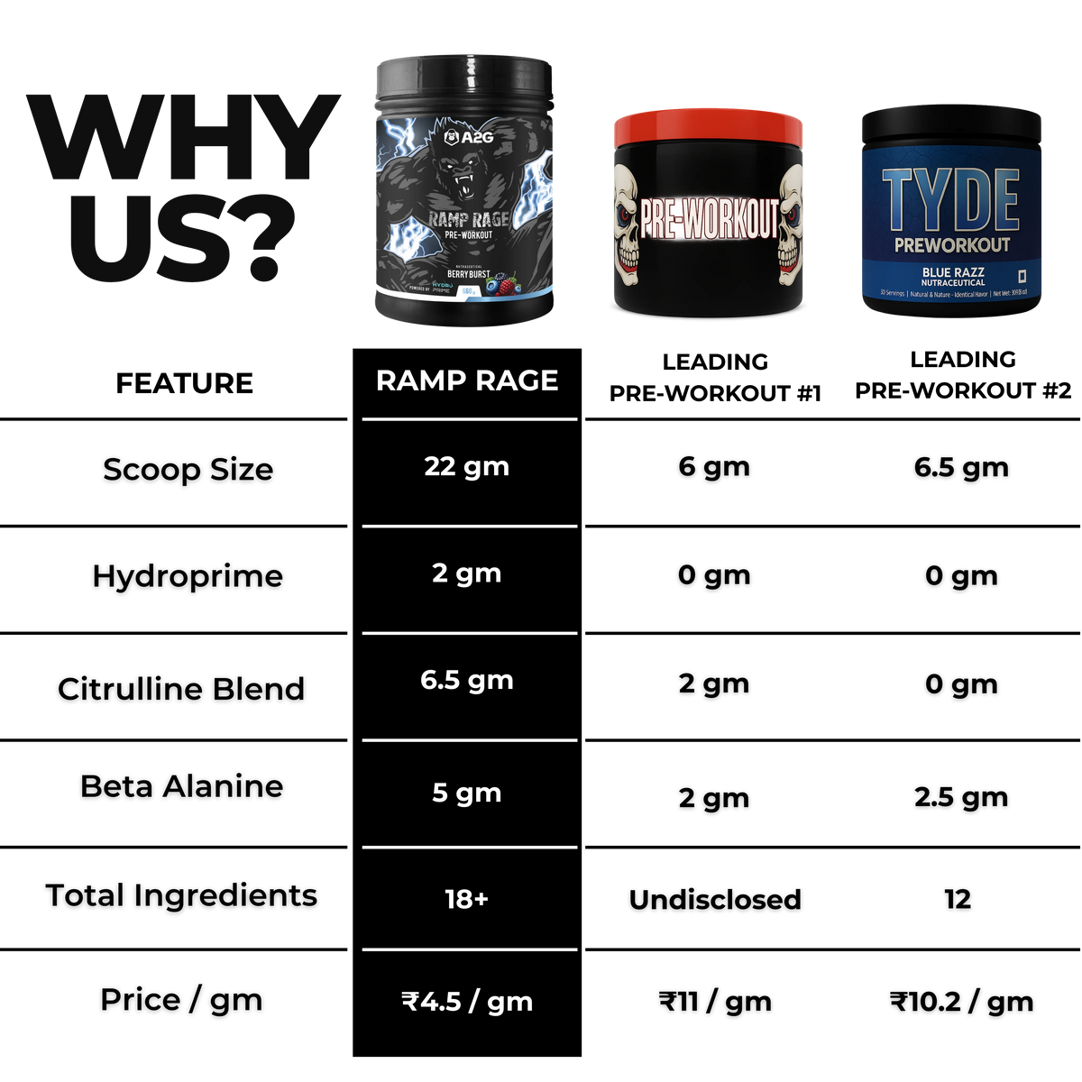 Ramp Rage is India’s first 22 g‑per‑scoop pre‑workout designed to deliver explosive pumps, sustained endurance and razor‑sharp focus Clinically dosed L‑citrulline, beta‑alanine and caffeine provide energy, pump and mental drive to make every workout count.